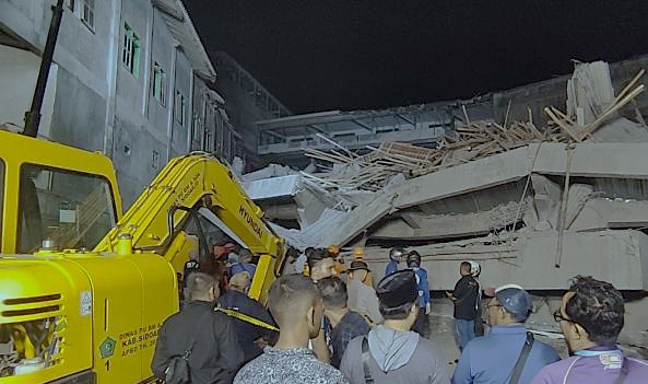 Petugas gabungan masih terus bekerja membersihkan puing-puing bangunan di sekitar lokasi. Proses ini diperkirakan memakan waktu hingga seluruh area reruntuhan benar-benar aman dan steril.